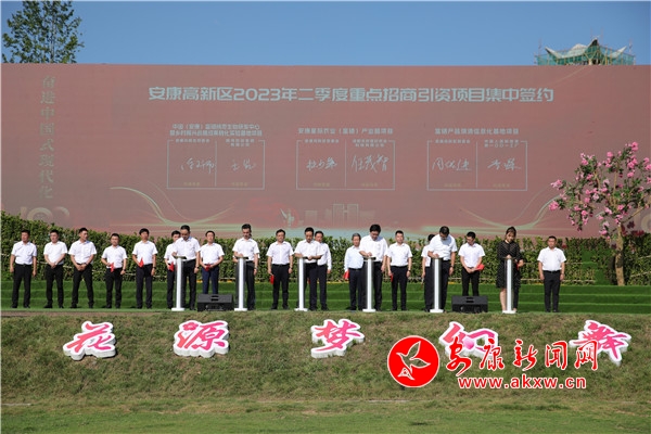 活動現(xiàn)場,還組織開展了納新黨員集中宣誓和老黨員重溫入黨誓詞儀式;為“光榮在黨50年”的老黨員代表頒發(fā)了紀念章;為安康高新區(qū)“學思踐悟新思想、干闖當頭譜新篇”知識競賽獲獎者頒獎。同時,還舉行了“安康高新區(qū)2023年二季度重點招商引資項目集中簽約活動”,總投資24.7億元的9個產(chǎn)業(yè)項目在現(xiàn)場領導、嘉賓的共同見證下進行了集中簽約。