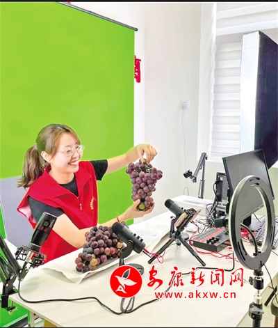 “大家好!歡迎來到山地生態(tài)葡萄直播間,今天給大家?guī)淼氖俏覀冞@兒的招牌水果陽光玫瑰葡萄。”在構元社區(qū)的專屬直播間里,志愿者正在進行一場直播帶貨。