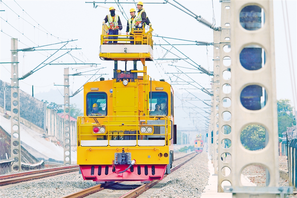 朱瑩駕駛軌道車配合接觸網(wǎng)工進行日常檢修