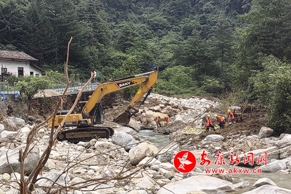 圖為:G210寧陜段境內(nèi)恢復(fù)通暢施工現(xiàn)場。