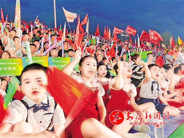 夜幕降臨,華燈初上。開(kāi)幕式在雄壯的國(guó)歌聲中拉開(kāi)帷幕。主會(huì)場(chǎng)內(nèi)聲樂(lè)齊鳴,精彩紛呈;場(chǎng)外流光溢彩,載歌載舞。開(kāi)幕式分為巡游入場(chǎng)、冠軍登場(chǎng)、行政儀式、文藝演出、揭幕比賽五個(gè)章節(jié)。嵐皋縣12個(gè)鎮(zhèn)的巡游隊(duì)伍走上街頭與市民互動(dòng);15支冠軍隊(duì)伍依次入場(chǎng),現(xiàn)場(chǎng)掌聲雷動(dòng);歌舞劇《歡迎你到嵐皋來(lái)》《旗開(kāi)得勝》《巴山魔芋情》以優(yōu)美的詞曲和曼妙的舞姿,展現(xiàn)嵐皋豐厚的旅游資源、特色產(chǎn)業(yè)、人文風(fēng)情等,中國(guó)內(nèi)地歌手沙寶亮傾情演繹的《暗香》等歌曲將現(xiàn)場(chǎng)氣氛推向高潮;在推介互動(dòng)環(huán)節(jié),嵐皋文旅推介官會(huì)同沙寶亮、世界散打冠軍、國(guó)家散打隊(duì)主教練許家恒、全國(guó)競(jìng)走冠軍陳珍、全國(guó)青運(yùn)會(huì)冠軍田紫丹分享了嵐皋的秀美風(fēng)光和民俗文化等文旅資源;絢爛的燈光秀、閃耀全場(chǎng)的煙花秀、56米騰空而起的巨龍交織變幻出一幅幅如夢(mèng)如幻的美好畫(huà)卷;在全場(chǎng)同唱《我和我的祖國(guó)》聲中,文藝演出落下帷幕。