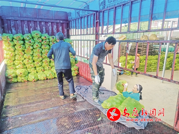 險(xiǎn)灘村村民將貝貝南瓜裝車