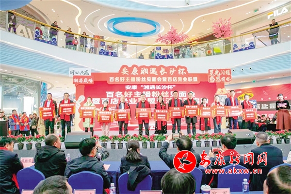12月21日,由安康市新媒體聯(lián)合會牽頭,漢濱區(qū)文化和旅游廣電局、漢濱區(qū)新城街道辦事處、漢濱區(qū)電商辦等單位聯(lián)合主辦,安康湘遇長沙餐飲有限公司、安康吉食鹵食品有限公司、安康吾悅廣場、安康融媒文化產(chǎn)業(yè)發(fā)展有限公司承辦的“星光閃耀·感恩有你——百名好主播粉絲見面會”暨百店異業(yè)聯(lián)盟交流活動在吾悅廣場隆重舉行。