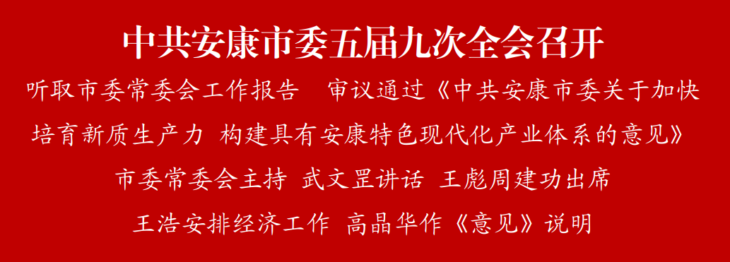 全會(huì)以習(xí)近平新時(shí)代中國(guó)特色社會(huì)主義思想為指導(dǎo),深入學(xué)習(xí)貫徹黨的二十大和二十屆二中、三中全會(huì)精神,貫通落實(shí)習(xí)近平總書記歷次來陜考察重要講話重要指示,全面落實(shí)省委十四屆八次全會(huì)部署,聽取市委常委會(huì)工作報(bào)告,審議通過《中共安康市委關(guān)于加快培育新質(zhì)生產(chǎn)力 構(gòu)建具有安康特色現(xiàn)代化產(chǎn)業(yè)體系的意見》,安排下半年重點(diǎn)任務(wù),達(dá)到了統(tǒng)一思想認(rèn)識(shí)、凝聚奮進(jìn)力量的目的。