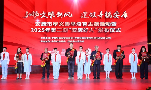 本次活動以“弘揚(yáng)文明新風(fēng) 建設(shè)幸福安康”為主題,由市委宣傳部主辦、石泉縣委和縣政府承辦,旨在深入學(xué)習(xí)貫徹黨的二十屆四中全會精神,扎實(shí)推進(jìn)崇德向上幸福安康建設(shè);顒蝇F(xiàn)場,通過播放典型人物短片、現(xiàn)場互動訪談等形式,生動再現(xiàn)了陳登發(fā)、高虎、黃壽琴等好人代表的感人事跡。市級領(lǐng)導(dǎo)及“中國好人”“陜西好人”等先進(jìn)典型代表為28名新入選的“安康好人”頒發(fā)紀(jì)念證書;顒蝇F(xiàn)場同時(shí)發(fā)布了2025年安康市“新時(shí)代好少年”名單,24名青少年獲得殊榮。