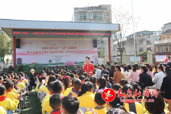 本網(wǎng)訊(見習(xí)記者 張璇)3月20日,由市創(chuàng)文辦、市文聯(lián)主辦的“強(qiáng)國復(fù)興有我”安康市文聯(lián)文藝“六進(jìn)”志愿服務(wù)暨《安康市文明行為促進(jìn)條例》宣傳活動在漢濱區(qū)南門小學(xué)舉行。