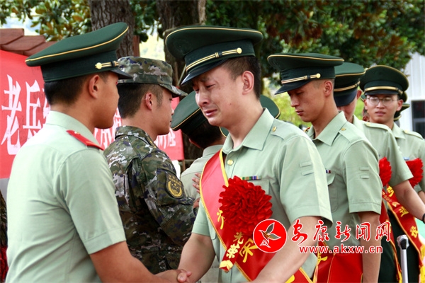 一雙雙緊握的手、一個個深情的擁抱,伴隨著悠揚的音樂,在送行的人群中我們看到了戰(zhàn)友們緊緊相擁,你一言、我一語,無一不訴說著戰(zhàn)友之間無限的眷戀?粗磳⒎謩e的戰(zhàn)友,官兵們再也控制不住內心的情感,眼中的淚水如斷線的珠子不斷滑落。這不僅是對軍營生活的留念,更是對軍旅青春的不舍。