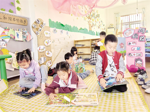4月23日,漢陰縣春蕾幼兒園的小朋友正在閱讀兒童讀物。(陳浩 攝)gBy安康新聞網(wǎng)