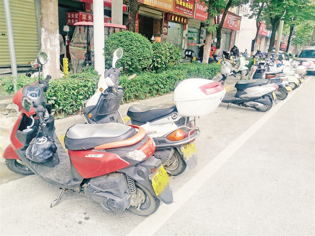 在地處江北的濱江大道上,情況也是如此。西城閣附近一小區(qū)正門前,停放的一排電動車、摩托車,行人進入小區(qū)需繞過車輛從側(cè)面通過。而親水廣場旁的花壇邊,也隨意停放著電動車。“劃了線的停車區(qū)明明就在前面幾米遠,但很多人為了省這幾步路,就隨便停在這里,真讓人想不通。”在廣場里休閑的王大爺說。