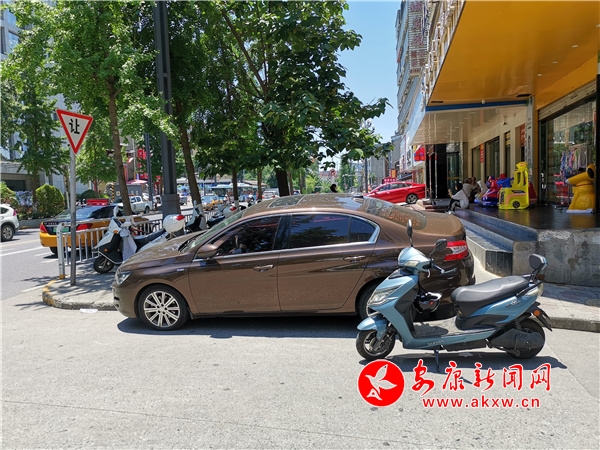 6月27日,安康城區(qū)金州南路報社巷違規(guī)停車。(記者 張喬 攝)……