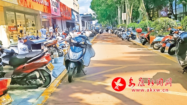 6月23日,金州南路東側,摩托車、電動車停放在公交港灣,存在安全隱患。(記者 吳單 攝)……