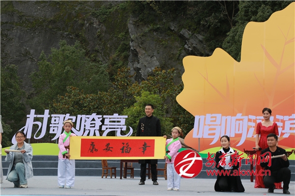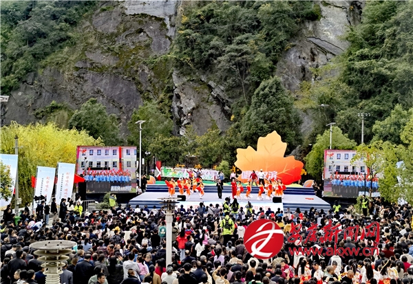 金秋時節(jié)的茨溝鎮(zhèn),萬畝紅葉、層林盡染。伴隨著歡快的鑼鼓聲,茨溝鎮(zhèn)、五里鎮(zhèn)、譚壩鎮(zhèn)三支隊伍輪番登場,不僅獻唱原創(chuàng)村歌,還展示特色產(chǎn)業(yè)、優(yōu)質(zhì)資源與地方文化,紛紛亮出獨具特色的“看家絕活兒”。歌伴舞《村歌飛揚》《松壩謠》《幸福歌兒唱起來》唱出了鄉(xiāng)親們的幸福生活;以修建八一水庫為背景的安康歌謠《我來了》引發(fā)會場共鳴;民俗表演《龍的傳人》則將節(jié)目推向高潮。舞蹈、鄉(xiāng)村T臺秀、民俗表演、八岔戲等節(jié)目,或以傳統(tǒng)幽默詼諧的風(fēng)格,或以深情敘述的方式,展現(xiàn)鄉(xiāng)村新生活,為觀眾獻上一場別開生面的視聽盛宴,現(xiàn)場歡呼聲此起彼伏。