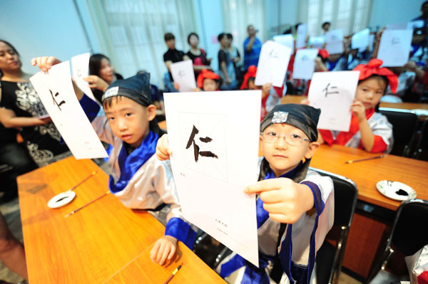 8月28日,天津市河西區(qū)馬場(chǎng)道小學(xué)的一年級(jí)新生在天津文廟開筆典禮上“擊鼓鳴志”。新學(xué)期伊始,天津市河西區(qū)馬場(chǎng)道小學(xué)的92名一年級(jí)新生身穿古典服飾,在天津文廟……