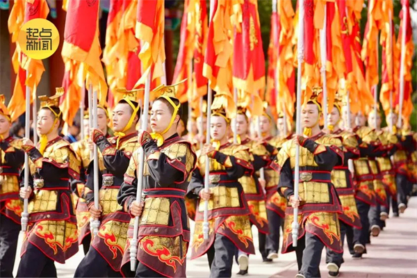 今年公祭典禮以“鑄牢中華民族共同體意識 奮進(jìn)中國式現(xiàn)代化新征程”為主題,共有九項儀程:第一項,全體肅立、擊鼓鳴鐘;第二項,唱《黃帝頌》;第三項,敬獻(xiàn)花籃;第四項,恭讀祭文;第五項,向軒轅黃帝像行三鞠躬禮;第六項,樂舞告祭;第七項,龍飛中華;第八項,瞻仰軒轅殿,拜謁黃帝陵;第九項,種植橋山柏。