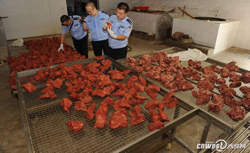 西安警方截獲17噸假牛肉 加工窩點(diǎn)現(xiàn)場(chǎng)令人作嘔