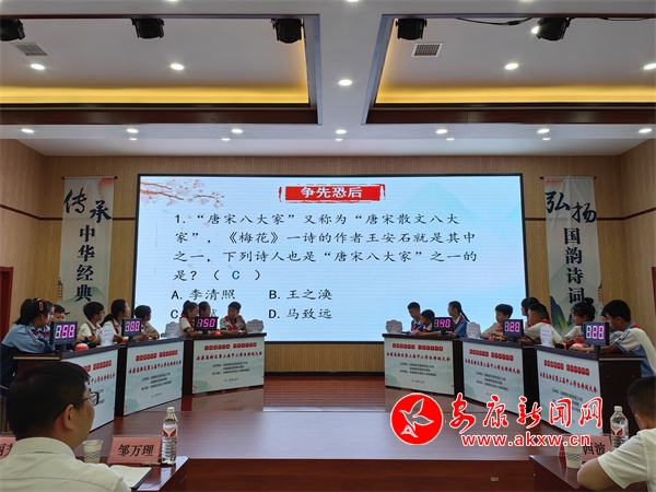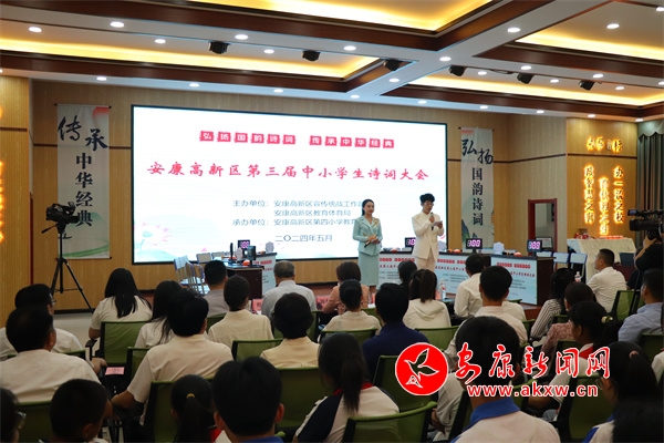 本網(wǎng)訊(通訊員 王宗濤)5月30日,安康高新區(qū)“弘揚(yáng)國(guó)韻詩(shī)詞 傳承孝義文化”第三屆中小學(xué)生詩(shī)詞大會(huì)決賽在高新區(qū)第四小學(xué)舉行。全區(qū)各中小學(xué)校長(zhǎng)、學(xué)生代表110余人到場(chǎng)觀摩,活動(dòng)通過(guò)微信視頻號(hào)同步直播,2萬(wàn)余名觀眾在線觀看比賽,一起重溫那些歷久彌新的經(jīng)典,領(lǐng)略中國(guó)古詩(shī)詞的魅力。