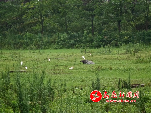 本網(wǎng)訊(通訊員 陳小惠)青青綠草地,牛伏月水畔,鷺鷥?nèi)逯唬c牛共棲息。日前,在漢陰縣澗池鎮(zhèn)樅嶺村月河之畔,一頭水牛正悠閑地臥在草地上小憩,幾只白鷺時(shí)而單腳站立在牛背上,時(shí)而俏皮地繞牛飛翔,構(gòu)成一幅優(yōu)美的動(dòng)態(tài)畫卷。
