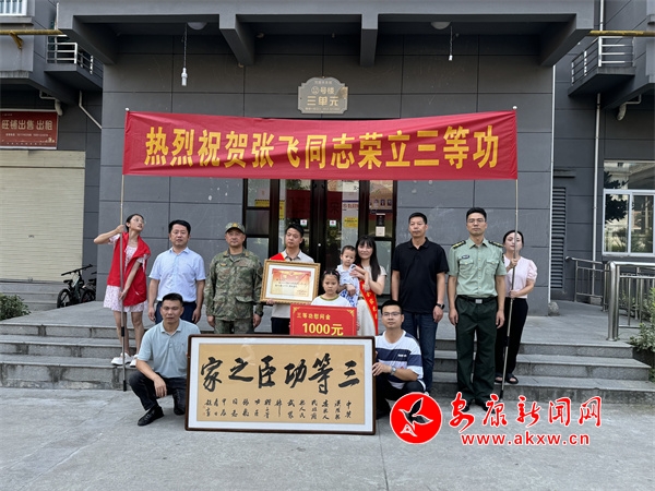 一張喜報、一枚“三等功”軍功章、一個立功牌匾、1000元的慰問金。在熱烈喜慶的氛圍中,一份份“喜悅”送到軍人軍屬家門口,對營造支持國防事業(yè)、尊重關愛功臣模范的社會氛圍意義非凡,左鄰右舍聞訊而來、交口稱贊。慰問組與立功受獎軍人家屬進行了親切交談,感謝他們?yōu)閲液蛙婈犦斔土藘?yōu)秀人才,并詳細了解家里生產生活情況,希望他們繼續(xù)支持孩子在部隊安心服役,為國防和軍隊現(xiàn)代化建設做出更大貢獻。