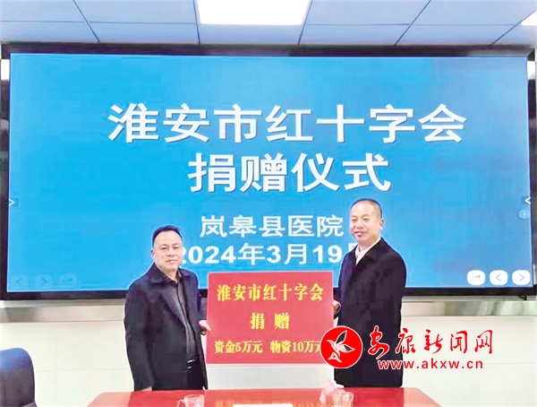 淮安市紅十字會(huì)為嵐皋縣醫(yī)院捐贈(zèng)資金與物資。