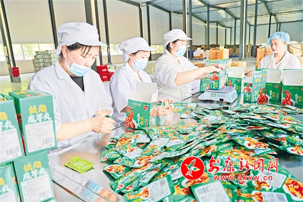 在蘇陜協(xié)作資金的幫扶下,嵐皋燭山食業(yè)有限公司開足馬力生產(chǎn)。