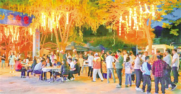 活動(dòng)現(xiàn)場,本土樂隊(duì)、游客與特邀嘉賓輪番登臺(tái),民謠、搖滾、電子樂交織回蕩。游客們圍著篝火載歌載舞,火光映紅張張笑臉,F(xiàn)場設(shè)置的文創(chuàng)產(chǎn)品和小龍蝦、燒烤等特色美食攤位更是滿足了游客的多重體驗(yàn)。
