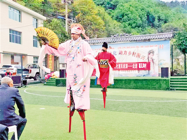 在五峰村,村支部書(shū)記羅仁春告訴記者,2023年村委會(huì)牽頭成立了五峰村文化民俗文藝協(xié)會(huì),陸續(xù)加入的48名會(huì)員涵蓋老中青三代,既有傳承高蹺絕技的老人,也有主動(dòng)學(xué)習(xí)弦子腔的年青一代。今年32歲的村民小梅加入?yún)f(xié)會(huì)后,一改往日下班后悶在家中的狀態(tài),每天下午吃完飯都會(huì)下樓和新認(rèn)識(shí)的姐妹載歌載舞,很快就成為舞蹈隊(duì)的主力。“以前不知道我們村上還有文藝協(xié)會(huì),自從村上干部告訴我后,我就趕緊加入了這個(gè)小團(tuán)體,既鍛煉了身體,又愉悅了心情,生活幸福感越來(lái)越強(qiáng)烈。”身著舞蹈服的小梅身姿婀娜,水袖飛揚(yáng)間,明媚的笑容如花一樣燦爛。