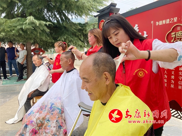 志愿者史書林在該鎮(zhèn)經(jīng)營一家理發(fā)店,為了奉獻(xiàn)自己的一份愛心,解決行動不便老人的理發(fā)需求,今天她一早便在店門口掛上了“暫停營業(yè)”的告示牌,趕到志愿服務(wù)活動現(xiàn)場。