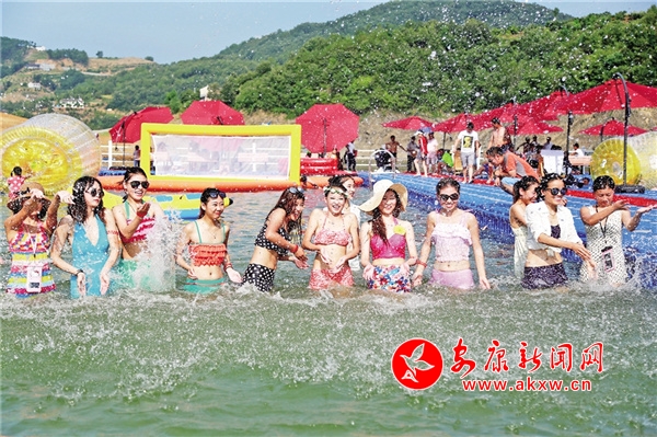 瀛湖的初夏,萬(wàn)千變化。清晨,山和水還在夢(mèng)中酣睡,一輪紅日從東面湖的盡頭沐浴而出,爬上山頭,霞光染紅了湖水,染紅了天空,湖面顯得更加清幽。傍晚,落日熔金,給群山鍍了一層金邊。此時(shí),群鳥(niǎo)歸隱,群魚(yú)入眠。江風(fēng)攪動(dòng)湖水,湖面波光瀲滟,明麗動(dòng)人。晚歸的漁民搖著一葉扁舟在寂靜的湖面上飄蕩,成為畫(huà)中最美的風(fēng)景。習(xí)習(xí)涼風(fēng)也吹散了白日的暑熱,舒適愜意,是休閑避暑的好去處。若遇雨天,天地間扯起絲絲銀線,水天一色,如煙如霧,籠罩在瀛湖上空。那若有若無(wú)輕煙一樣的雨霧輕盈地飄蕩在湖面上、群山間,翠屏山莊上的亭臺(tái)水榭、湖心碧螺島上的螺峰塔,全都沐浴在水蒙蒙的輕紗中,如夢(mèng)似幻。“西塞山前白鷺飛,桃花流水鱖魚(yú)肥。青箬笠,綠蓑衣,斜風(fēng)細(xì)雨不須歸。”此時(shí),湖里的魚(yú)兒成群結(jié)隊(duì)地游出水面透氣,正是釣魚(yú)的最佳時(shí)機(jī),湖邊不少垂釣愛(ài)好者正興致勃勃地冒雨釣魚(yú),完全不顧雨已打濕了衣服。湖中,一葉葉漁舟和游船在雨中漫游,幽幽絲竹之聲從游船中飄出,像游走在煙雨迷蒙的江南水鄉(xiāng)。