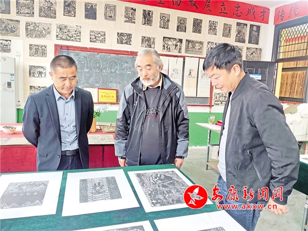 指導(dǎo)老師對(duì)瀛湖小學(xué)學(xué)生版畫進(jìn)行點(diǎn)評(píng)。 宋安平 攝