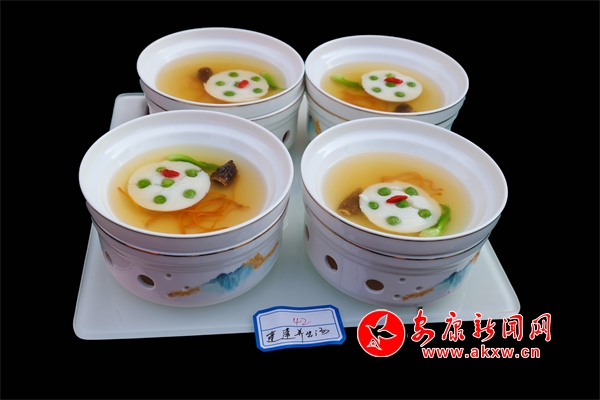 第二道菜品則是傳統(tǒng)與創(chuàng)新并蓄的蓮蓬養(yǎng)生湯。這道菜品主菜形似蓮蓬,不僅外觀精致高雅,而且湯鮮味美,營養(yǎng)豐富,每一口都蘊(yùn)含著廚師對(duì)食材的精心挑選和對(duì)烹飪技藝的極致追求。張顯峰最終憑借其精湛的廚藝和創(chuàng)新的菜品脫穎而出,榮獲一等獎(jiǎng),并被授予“陜南烹飪名師”的榮譽(yù)稱號(hào)。這不僅是對(duì)他個(gè)人技藝的肯定,更是對(duì)紫府壹號(hào)陜南文化主題餐廳及整個(gè)紫陽美食文化的極高贊譽(yù)。更是對(duì)紫陽美食文化的一次有力推廣。
