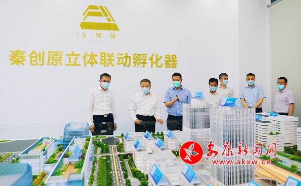 武文罡、王浩來到位于西咸新區(qū)灃東新城的秦創(chuàng)原立體聯(lián)動孵化器總基地,詳細了解基地規(guī)劃設計、高校入駐和招商引資等情況,實地察看入駐高?萍佳邪l(fā)、成果轉(zhuǎn)化和我市擬選飛地孵化園過渡空間建設情況,對西咸新區(qū)管委會、灃東新城管委會全力支持幫助安康深度融入秦創(chuàng)原創(chuàng)新驅(qū)動平臺表示感謝。