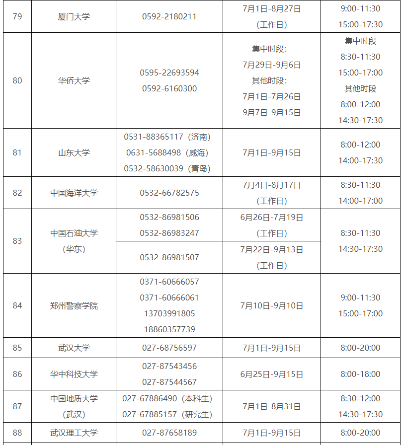 各。ㄗ灾螀^(qū)、直轄市)和中央部門所屬高校同步開通了熱線電話,電話號碼與開通時間可查看匯總表。