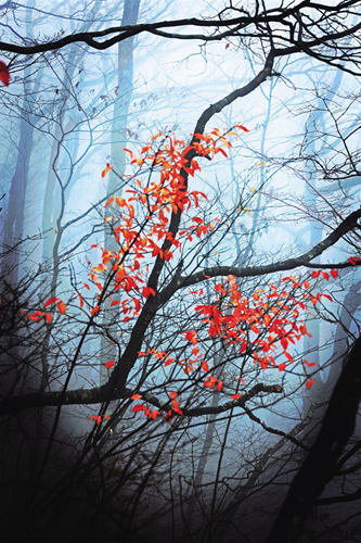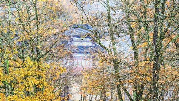 入冬之后,石泉云霧山鬼谷嶺景區(qū)的樹葉紅了,登上山頂遠眺群山,疊翠流金,云霧縹緲,宛如人間仙境。