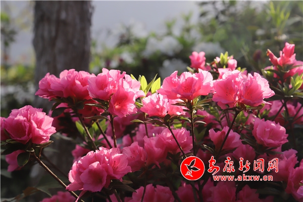 連日來,嵐皋縣巴山珍稀植物園內(nèi)近萬株杜鵑陸續(xù)盛開,繽紛相映。植物園里的杜鵑粉的似霞、白的似雪、紅的似火,幾十個(gè)杜鵑花品種開滿嵐河山坡岸邊,花中西施盡顯風(fēng)采、鮮艷奪目,將植物園裝扮得格外爛漫。 (圖文/廖霖)f7c安康新聞網(wǎng)