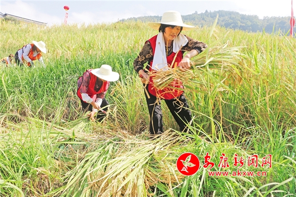 9月3日,平利縣長安鎮(zhèn)中原村“旱改水”項目區(qū)的130畝水稻相繼成熟并進(jìn)入收割期。吳永杰 攝