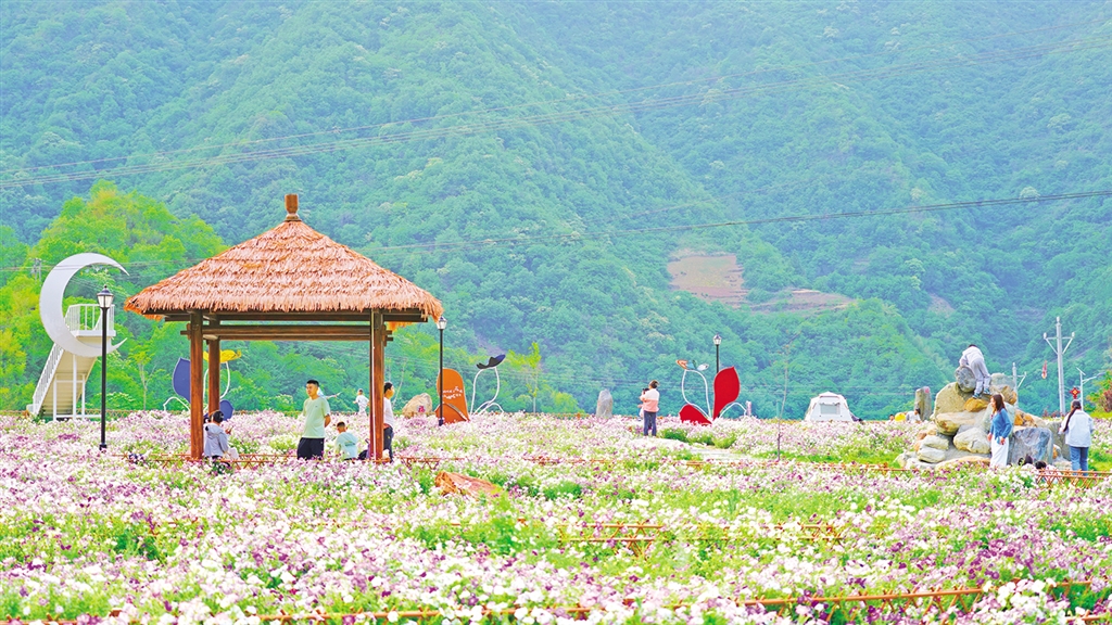 5月的白河,青山如黛,綠意蓬勃。乘車沿著縣城二級(jí)路走進(jìn)位于構(gòu)朳鎮(zhèn)涼水村的百福園花園,眼前驟然鋪開一幅色彩斑斕的畫卷。牽牛花如彩色小喇叭般昂首,小雛菊似亭亭玉立舞者般輕盈,格;ㄈ缪┯蛳勺影愀蓛羲匮,群芳爭(zhēng)艷間,將鄉(xiāng)村田園的質(zhì)樸與浪漫詮釋淋漓盡致。草坪野餐、放風(fēng)箏,露天營(yíng)地等娛樂項(xiàng)目吸引了眾多游客紛至沓來。 (通訊員 周驍)