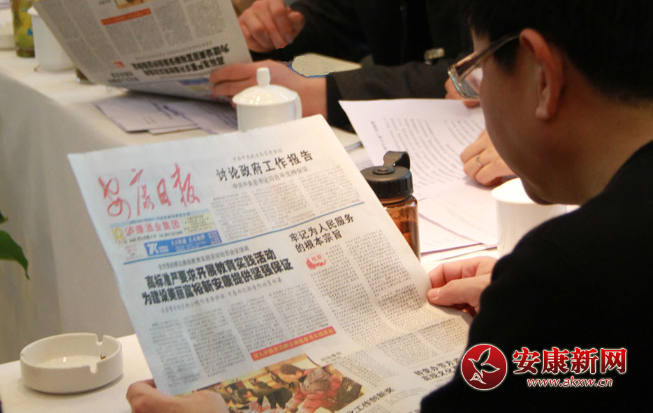 政協(xié)委員正在認(rèn)真地閱讀《安康日報(bào)》關(guān)于兩會(huì)的報(bào)道。
