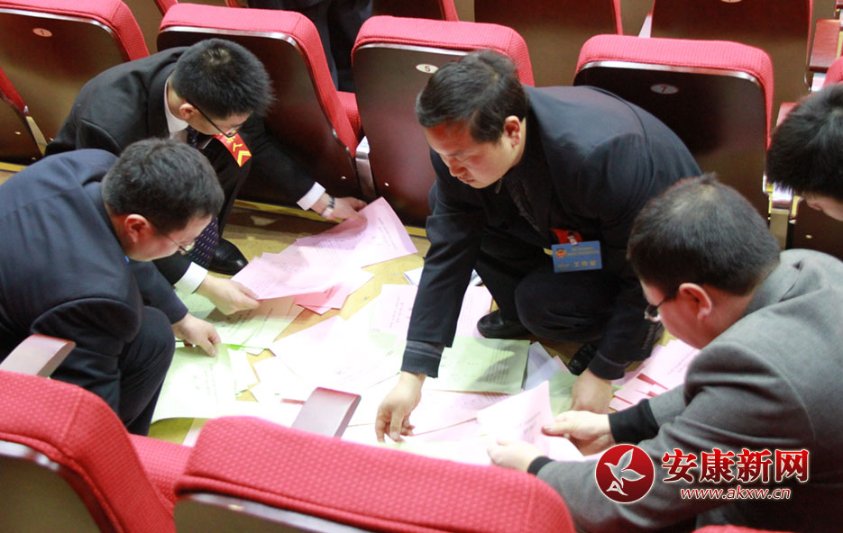 大會(huì)工作人員現(xiàn)場對投票進(jìn)行統(tǒng)計(jì)
