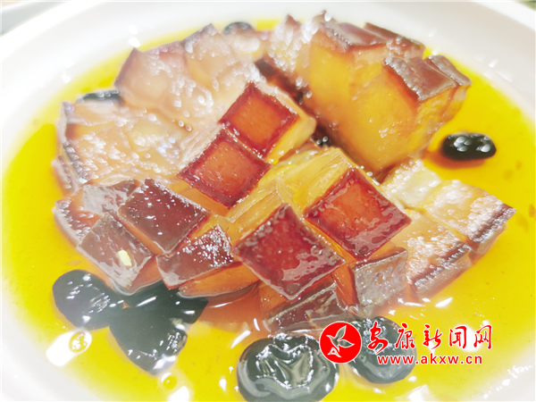 推薦理由:這道菜選用肥瘦相間的五花肉,切成小方塊,配以紅棗、蜜汁調(diào)味,大火蒸制成型后,菜品形色如櫻桃般嫣紅誘人,味道酥爛肥美,甜香豐腴、入口即化,是色香味俱全的美味佳肴,擺在席面上,好看又好吃,且顏色喜人,寓意很好,是一道非常適合宴請(qǐng)賓朋時(shí)品嘗的菜肴。