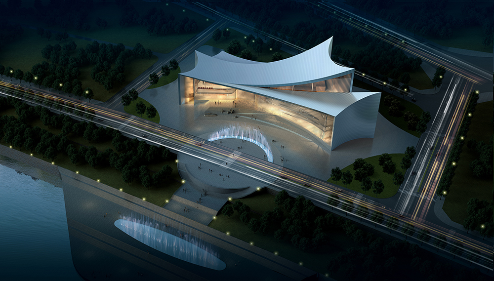 漢江大劇院項目是我市首個國家A類劇場項目,由中國工程院院士、著名建筑設(shè)計大師張錦秋領(lǐng)銜、中國建筑西北設(shè)計研究院華夏所規(guī)劃設(shè)計。整體設(shè)計方案以擁抱漢江為主題,突出“漢水舞韻”鮮明特征,與沿漢江景觀節(jié)點安康博物館、安瀾樓、西城閣形態(tài)一脈相承,體現(xiàn)了安康秦楚文化的飄逸與浪漫,彰顯了安康從歷史走向未來的秦巴神韻。